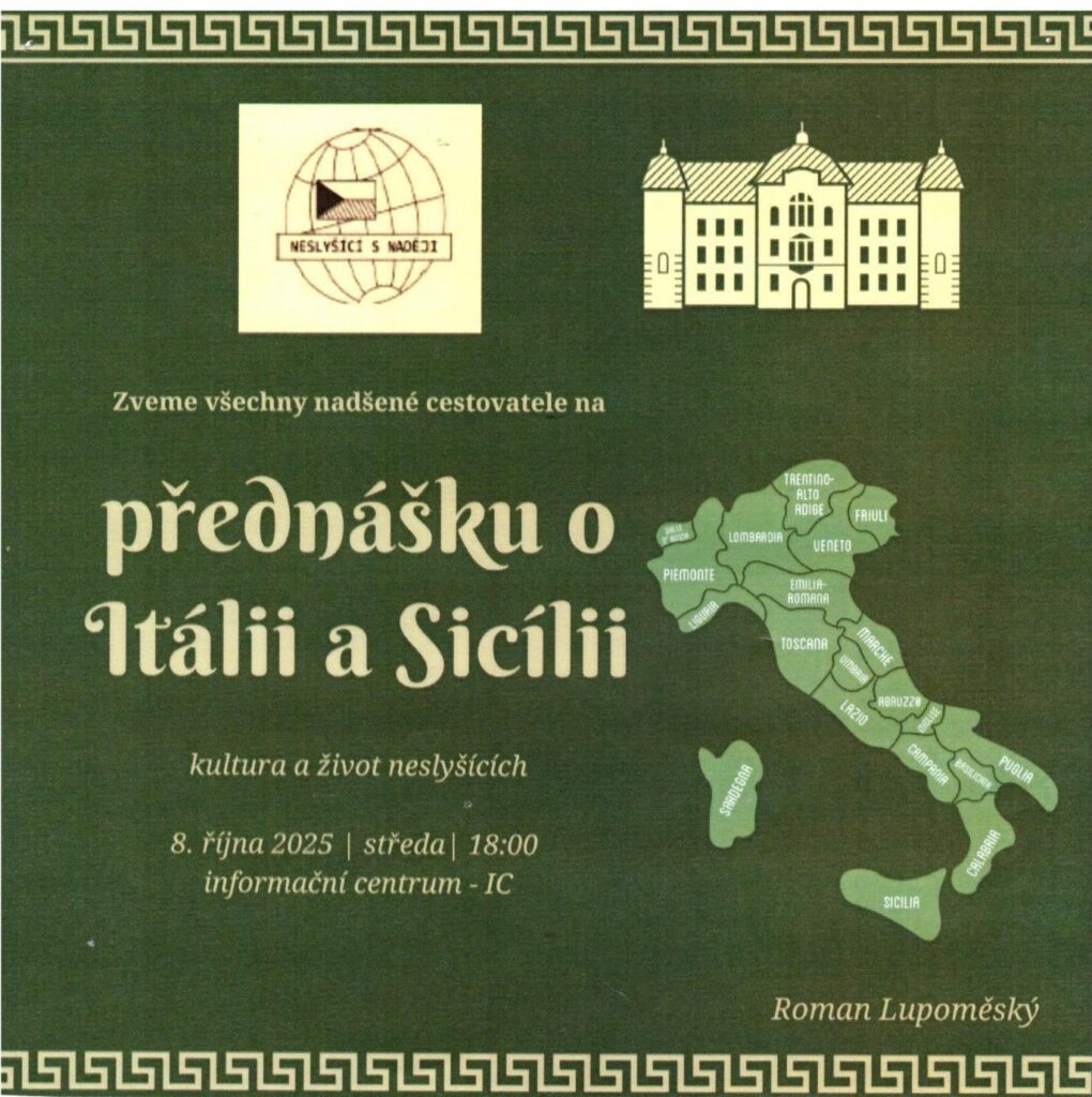 Přednáška přiblíží nejen přírodní a kulturní zajímavosti Sicílie, ale také život neslyšících – jak v organizacích, tak v každodenním životě.