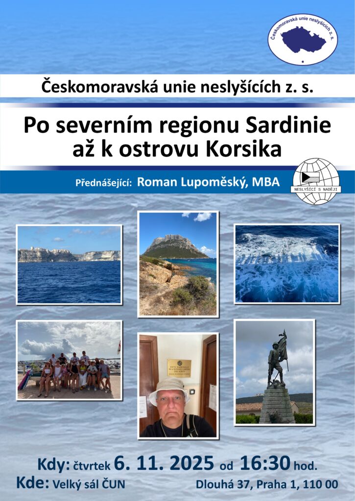 Na přednášku bude pan Roman Lupoměský v ČUN s tématem„Po severním regionu Sardinie až k ostrovu Korsika“6. listopadu 2025 od 16:30Velký sál ČUN, Dlouhá 37, Praha 1Přijďte se s námi podívat na něco zajímavého!